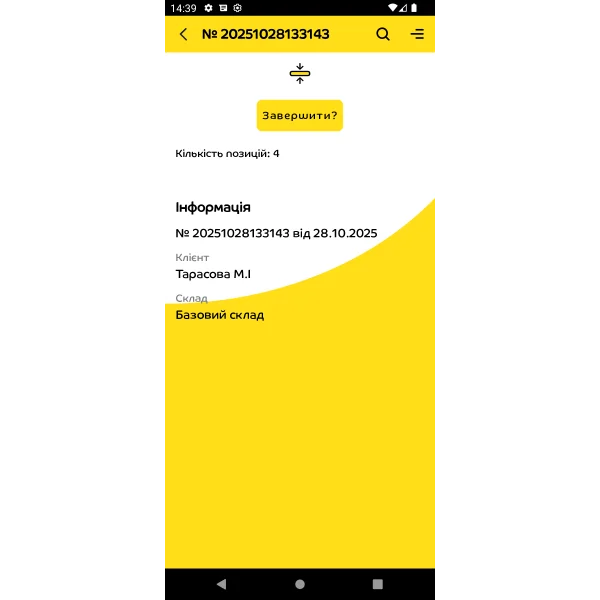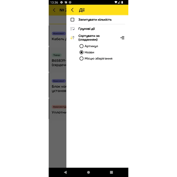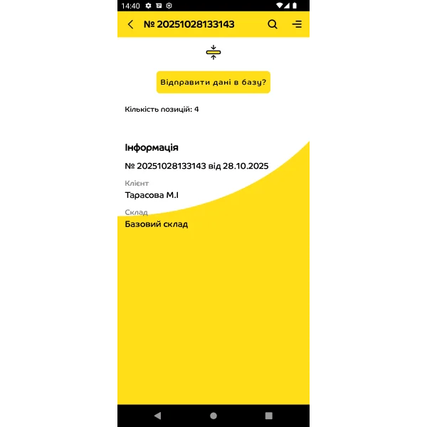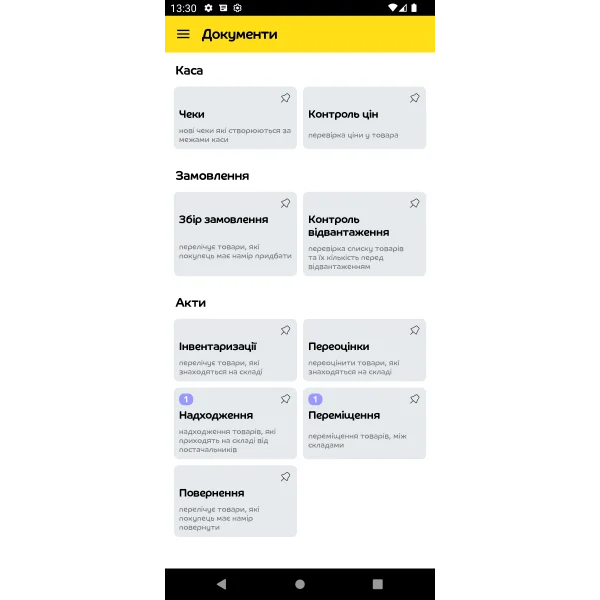 Після встановлення додатку термінал стає інструментом для будь-яких складських операцій. Працівнику достатньо відкрити документ, відсканувати товар — і система автоматично звіряє все з обліковими даними. Додаток одразу підказує кількість, серію, партію, комірку, дату придатності чи інші характеристики. Якщо щось не співпадає, працівник бачить попередження.
