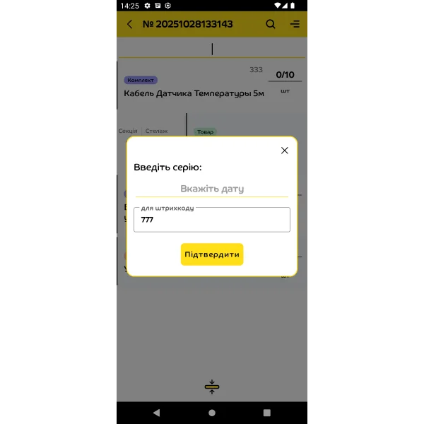 Програма блокує неправильні серії, не дозволяє взяти товар із чужої комірки, попереджає про нестачу або надлишок. Усі дії працівника контролюються системою, що гарантує коректність комплектування.